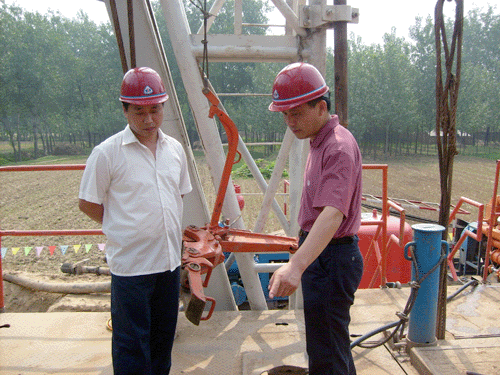 會(huì)后,王總一行又冒雨前往工地現(xiàn)場(chǎng)。仔細(xì)檢查了井場(chǎng)的設(shè)施情況及各種資料,同時(shí)勉勵(lì)大家:恪守職責(zé)嚴(yán)把質(zhì)量關(guān),遵守各項(xiàng)規(guī)章制度,力爭(zhēng)做出一個(gè)模范工程.