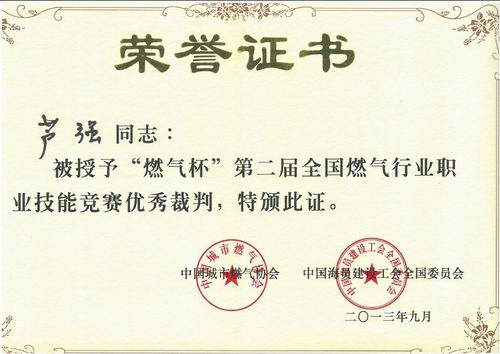 大賽結(jié)束后,中國(guó)城市燃?xì)鈪f(xié)會(huì)下發(fā)表彰文件,組委會(huì)舉行了隆重的頒獎(jiǎng)儀式。至此,中裕燃?xì)獾膸酌夹g(shù)精英以良好的成績(jī)完成了在全國(guó)燃?xì)庑袠I(yè)技術(shù)競(jìng)賽中的“首秀”。