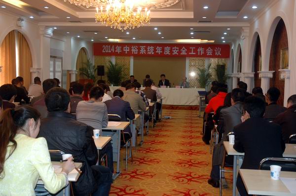管理總部、濟源公司聯合訊  4月17日—18日,2014年中裕系統年度安全工作會議在河南濟源順利召開。會議由管理總部生產營運部總經理盧迎九主持,來自管理總部及各子公司的80余名安全管理及相關人員參加了會議,集團副總裁侯夏輝、工會主席李小會及濟源公司總經理鄭峰出席會議并做了講話。